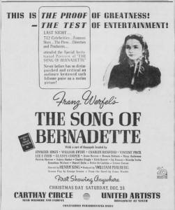 THE SONG OF BERNADETTE [20th